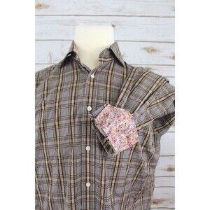 Thomas Dean Men's size L L/S Button-Front purple yellow Plaid Flip Cuff paisley
