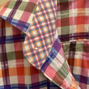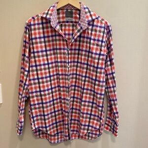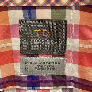Thomas Dean Plaid Button Down Pima Cotton L/S Shirt Contrasting Cuffs Size M