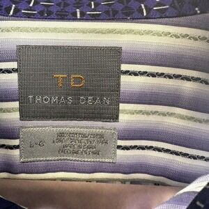 Thomas Dean Purple Shirt Mens L Striped 100% Cotton Button Up Long Sleeve. Condition is Pre-owned. Shipped with USPS Ground Advantage.