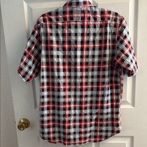 Thomas Dean Red and Blue Casual Button Down Shirt