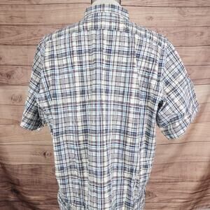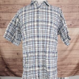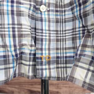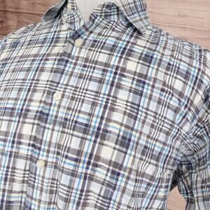 Thomas Dean Shirt Mens 2XL Blue Gray Plaid Short Sleeve Button Down Pima Cotton