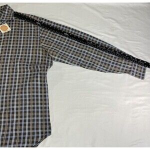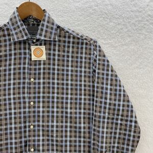 Thomas Dean Men's Large Brown Blue Plaid Cotton Long Sleeve Button Up Shirt