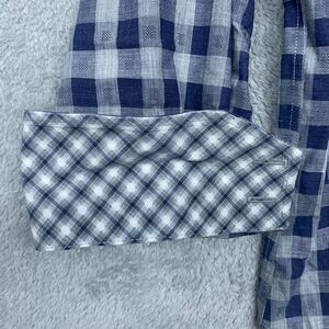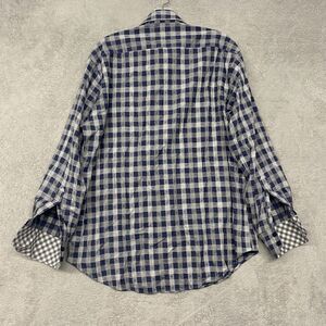 Thomas Dean Shirt Mens Medium Blue Gray Check Button Up Cotton Flip Cuff Plaid