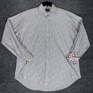 Thomas Dean Shirt Mens XL Grey Flip Cuff Paisley Long Sleeve Button Up Adult