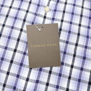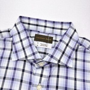 Thomas Dean Short Sleeve Button Up Shirt Men’s Size Medium Purple Plaid Career