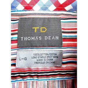 Thomas Dean Size Large Mens Multi Stripe Embroidered Logo Spread Collar Shirt