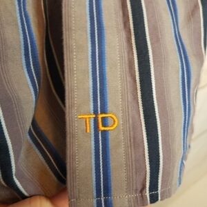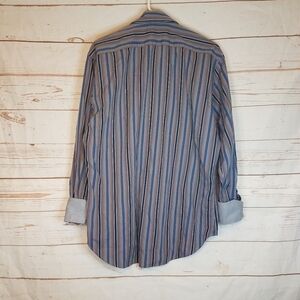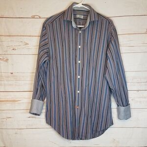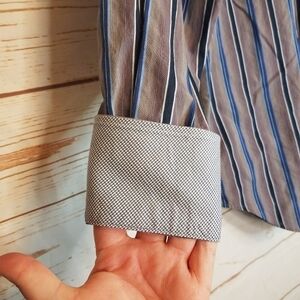 Thomas Dean Striped Contrasting Cuff Button Down