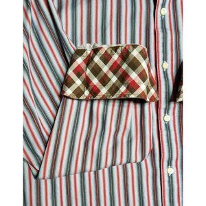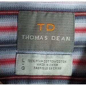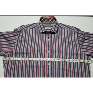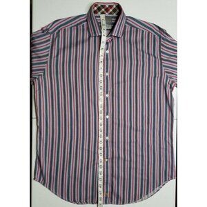 Thomas Dean TD Long Sleeve Button Up Flip Cuff Gray/Red Striped Shirt Men's L