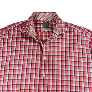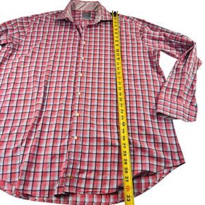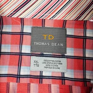 Thomas Dean TD Men’s Long Sleeve Button-Up Shirt XXL Red Blue Plaid Classic Fit