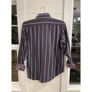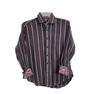 Thomas Dean TD Multi-Color Striped Flip-Cuff Long Sleeve Button Shirt ~ Men's L