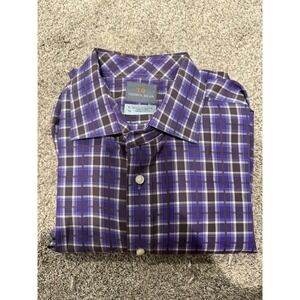 Thomas Dean long sleeve men's button up shirt. Size is XL. Color is purple and in plaid.