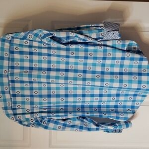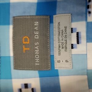 Thomas Dean blue plaid 100% cotton LS button down size small
