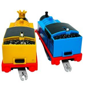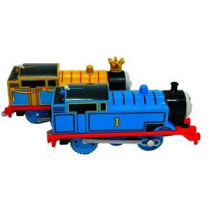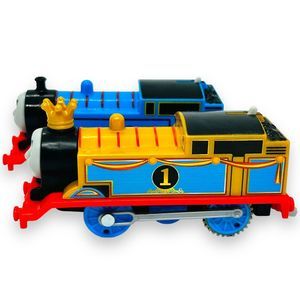 This lot of two Thomas & Friend Track Master motorized engines features one with a gold crown and blue design. Each engine has been thoroughly tested and is in excellent working condition. The battery-powered locomotives are limited edition and come unboxed. This original Gullane model train is part of the Animated Adventures series and is perfect for fans of the Thomas & Friends franchise.