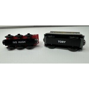 Thomas & Friends Gullane Ivo Hugh Red Train Engine + 7 Toby Car Magnetic Wooden