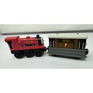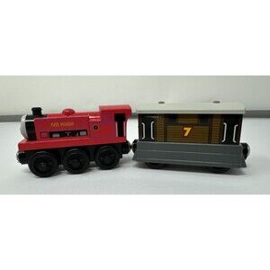 Thomas & Friends Gullane Ivo Hugh Red Train Engine + 7 Toby Car Magnetic Wooden