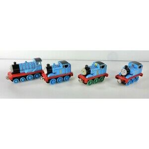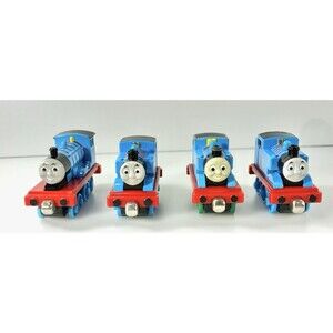 Thomas & Friends Take-N-Play lot includes four diecast train engines featuring Thomas and his friends from the beloved series. Each train is made of durable metal with bright colors and detailed designs that capture the charm of the characters. These classic Take-N-Play engines are perfect for collectors, young fans, or anyone looking to expand their existing Thomas & Friends railway set. The trains show light signs of use from play but remain in good condition overall, with smooth rolling wheels and no major damage. A great addition to any Thomas collection and ready for more adventures on the tracks.
