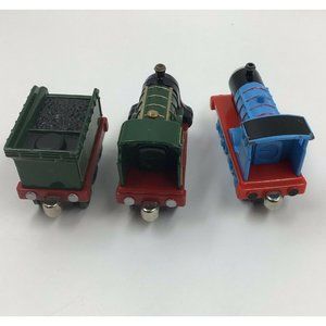 Good pre-owned Thomas and Friend die cast models Edward 2002, Emily and tender 2004 Take N Play. All retired. Some signs of wear. Some missing paint. Noted in photos. See photos for condition and measurements.