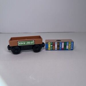 The Thomas & Friends Wooden Railway Train Tank Pop-Out Sodor Library Books Cargo Car is a wooden toy train accessory from 2003. It features a cargo car designed to look like a library bookshelf that can pop out to reveal books inside. The character associated with this cargo car is a Cargo Car from the Thomas & Friends franchise. It is part of the Wooden Railway series by Learning Curve and is recommended for children aged 2 and above. This unique and interactive toy is a fun addition to any Thomas & Friends toy train collection.