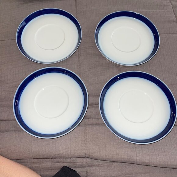 Thomas Germany Brushed Cobalt Saucers Set of 4 White Blue MCM