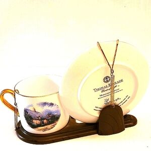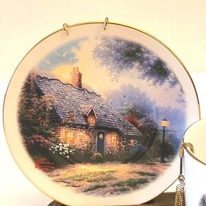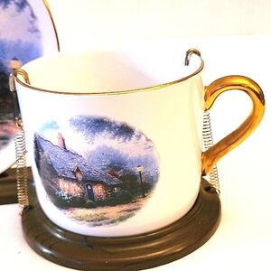 Vintage Thomas Kincaid Mountain Cottage Saucer and Coffee Cup mounted on easle