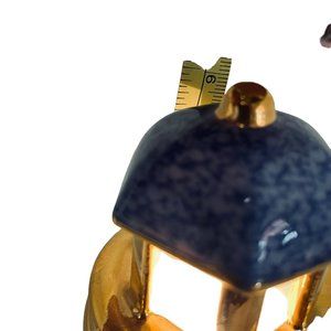 This beautiful blue ceramic lighthouse by Thomas Kinkade, designed in mid-century modern style, is a battery-operated light from 2004. It stands 8" tall, adding a charming touch to any space.