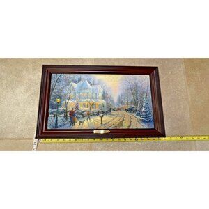 This illuminated canvas art by Thomas Kinkade captures a Victorian winter evening scene with soft glowing details. Ready to hang. Numbered: B8402