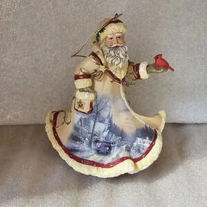 Celebrate the holiday season with this beautiful Thomas Kinkade Ashton Drake Christmas Ornament. The ornament features a nostalgic Santa Claus design, crafted from high-quality resin with a multicolor finish. It measures 4.25 inches in height and comes with a hanging feature for easy decoration.