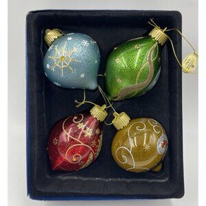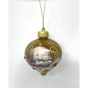 Set of 4 Thomas Kinkade Light Up The Season Luminary Glass Ornaments