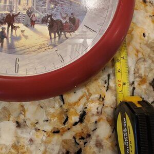 Thomas Kinkade Painter of light - Christmas Carol Clock 12 Songs VILLAGE CHRISTMAS 8" diameter NEW - Light sensor deactivates Carols when room is dark. Also has a table stand. Twelve Carols - one each hour.