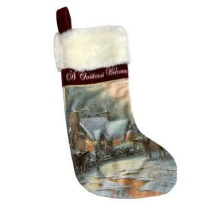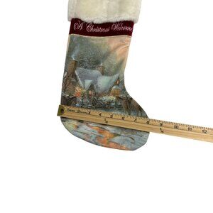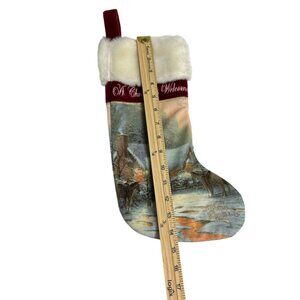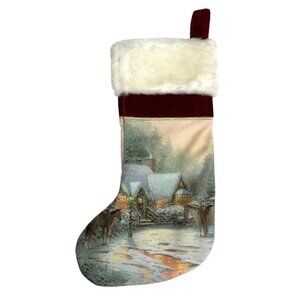 Thomas Kinkade Christmas Stocking 18" With Fur Cuff & Deer Scene Holiday Decor