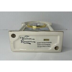 This beautiful Thomas Kinkade Sweetheart Cottage mantel clock is a perfect addition to any collection. Crafted from high-quality ceramic and porcelain materials, this desk clock features a charming beige color that will complement any decor. The clock is 9.5 inches in height, 5.75 inches in length, and 2.5 inches in width, making it the ideal size for any room. This clock is part of the Sweethearts franchise and was manufactured in 2004. It comes with a lit feature that adds a cozy touch to any space. This collectible desk clock is perfect for those who love to decorate their living space with unique pieces.