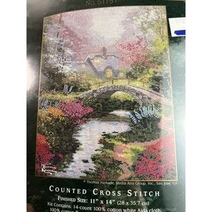 Thomas Kinkade Counted Cross Stitch Kit #51157 Brookside Hideaway 11 x 14 Sealed.