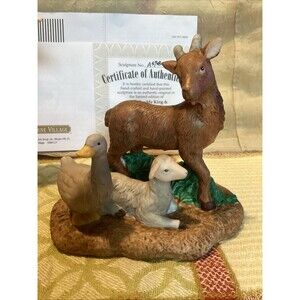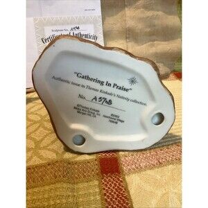 The Thomas Kinkade Hawthorne Village Nativity Gifts set includes figurines of Wisemen, animals, and is part of a Nativity scene, all handmade and artist-designed by Thomas Kinkade. The ceramic and porcelain pieces are painted in a multicolor scheme and come with a certificate of authenticity. This collectible set, part of the Hawthorne Village franchise, is perfect for Christmas and can be used for multiple purposes. The vintage Nativity scene is a religious-themed addition to any home decor, especially for those who appreciate the work of Thomas Kinkade.