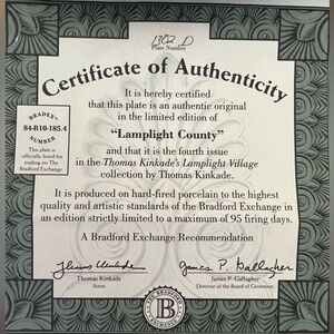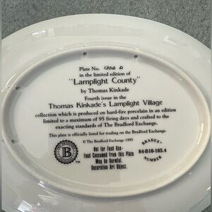 Thomas Kinkade Lamplight County plate. Thomas Kinkade Lamplight Village collection.