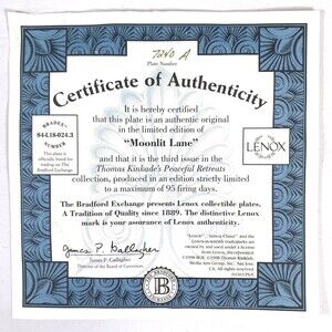 Thomas Kinkade Moonlit Lane Cottage Plate Bradford Exchange Lenox W/ Certificate