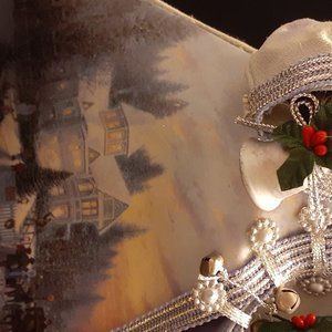 This is a vintage 2003 Thomas Kinkade Santa from the Old World Santa Christmas Collection.. This item has been sitting on a shelf displayed for many years and has some staining on the right top side of his coat. Otherwise, he is in great condition. He is 8 inches tall and 9 inches wide. Smoke free home.