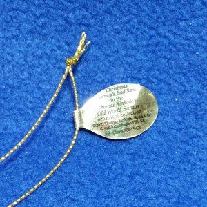 This beautiful ornament is part of the Old World Santa Ornament Collection from Thomas Kinkade. The name of the ornament is Christmas Journey's End Santa. It is also a Heirloom Ornament from Ashton Drake and was sold by Bradford Exchange.