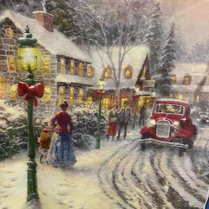 Thomas Kinkade double sided flag celebrating the Holiday Season with this gorgeous waterproof, washable piece. Perfect for the front porch, mailbox area, window, or garden. Could be used inside as well. Does not come with flag pole.