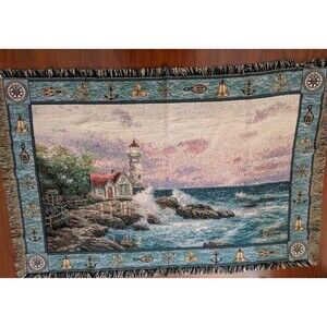 Thomas Kinkade Painter of Light Lighthouse Tapestry Throw Blanket Made in USA
