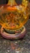 This is really cool! The glass pumpkin sits over a scene with haunted(?) houses that light up/glow. Horses & carriages circle around the outside.