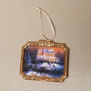 This beautiful Hallmark ornament from 1998 collector series features Thomas Kinkade Painter of Light pictures a Victorian Christmas II. Made of ceramic with a satin ribbon to hang on your tree. Comes in the original box and ready to be a beautiful decoration for your tree! I have many items from Thomas Kinkade available!!!
