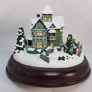 This exquisite Thomas Kinkade sculpture captures the essence of a snowy Victorian Christmas scene. Each detail brings the enchanting holiday spirit to life, from the cozy glow of the windows to the meticulously crafted snow-covered trees. A perfect addition to any seasonal decor, this piece reflects masterful artistry and timeless charm.