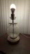 This table lamp features a textured glass globe and a sleek silver base. Perfect for adding a touch of elegance to any room.