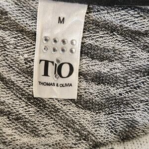 This Thomas & Olivia top is un great pre-owned condition with no stains or flaws. There's a zipper on the neck for a moto vibe. Sleeves are elbow length. See photos for measurements, fabric content, and care. Size medium