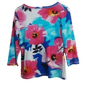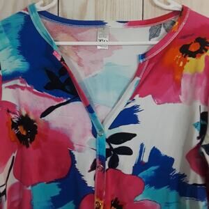 Thomas & Olivia floral button up cardigan. 3/4 sleeve. Bright floral design.