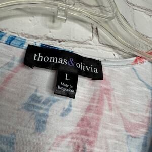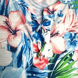 Thomas & Olivia Wms L Blue Pink White Tropical Floral Sleeveless Lace-up Top