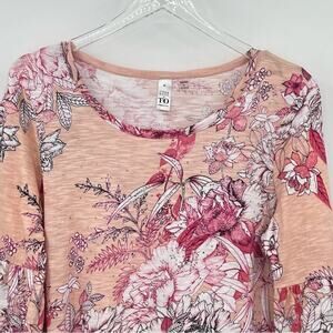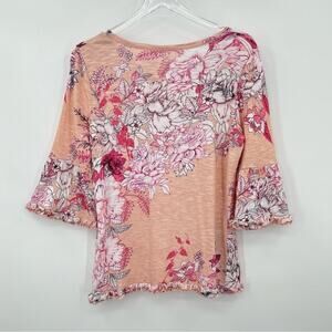 Thomas & Olivia modal blend peach pink floral tiered ruffle 1/2 sleeve pullover blouse
