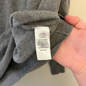 Thomas Parker NY Gray Patch Brown Wool Sweater M 1/4 Zip Long Sleeve Preppy