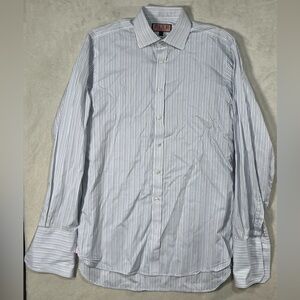Thomas Pink 15.5-36 Savile Row French Cuff Navy Stripe Spread Collar Shirt EUC