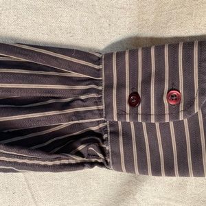 Great condition. Fitted with darts. Size 12 brown striped business or casual wear shirt. Pit to pit 19” length is23.5 “